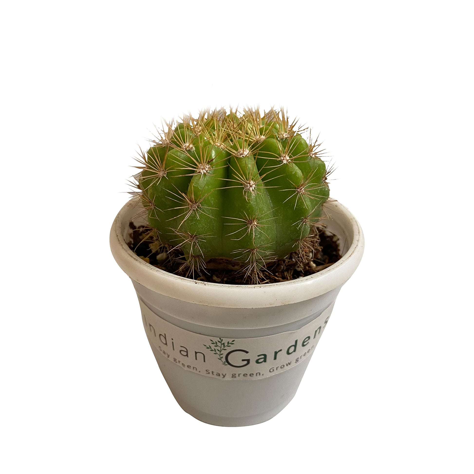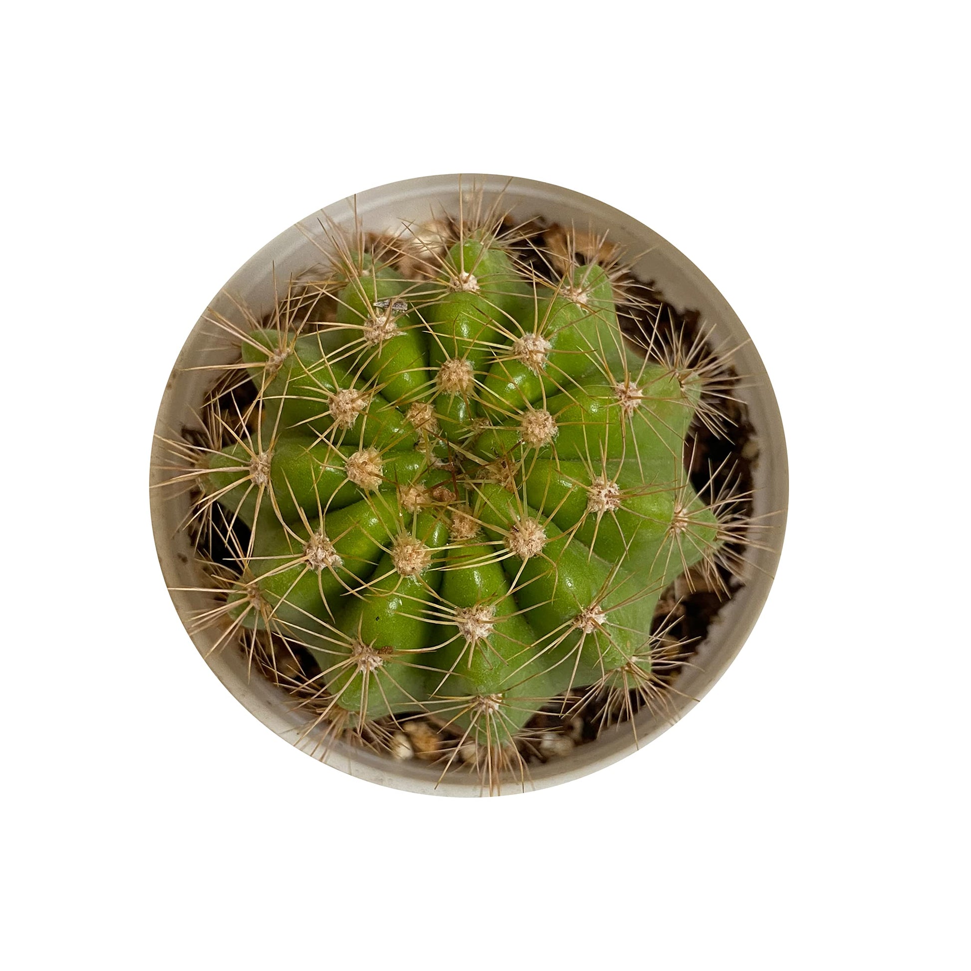 Growing as a large roughly spherical globe, Echinocactus grusonii may eventually reach over 1 metre (3.3 ft) in height after many years. Younger Golden Barrel plants do not look similar to mature specimens. The generation lifetime is estimated to be 30 years.Small yellow flowers appear in summer around the crown of the plant, but only after twenty years or so.The cactus is considered easy and relatively fast growing in warmer climates around the world. The plants do have some basic requirements; an average minimum winter temperature of 12 °C; and good drainage with less watering in winter. Excess water in cool periods may lead to rot. Golden Barrels are hardy to about